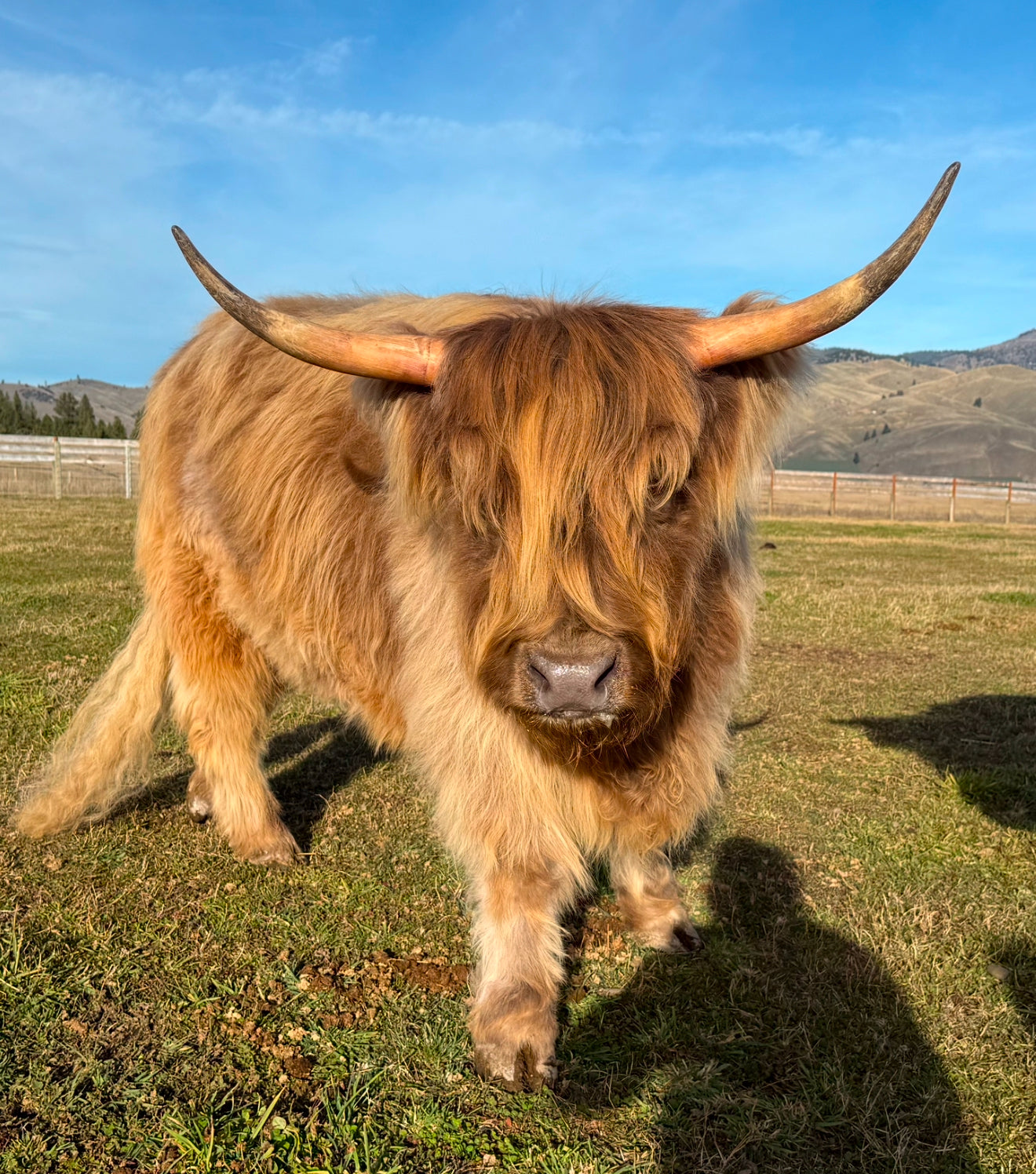 Frozen Tundra is non-chondro. He’s nearly full highland and puts loads of hair on his tiny little calves. About 50% of his calves have been tipped so far and the rest were solid. He checks all the boxes on conformation and temperament.