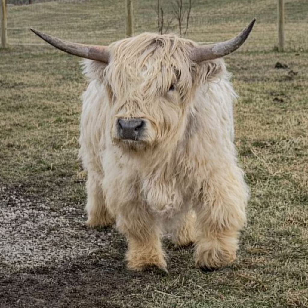 Gunner is the result of five generations of selective breeding, making him 99% Highland. At 5 years old and just 38” tall, he brings: